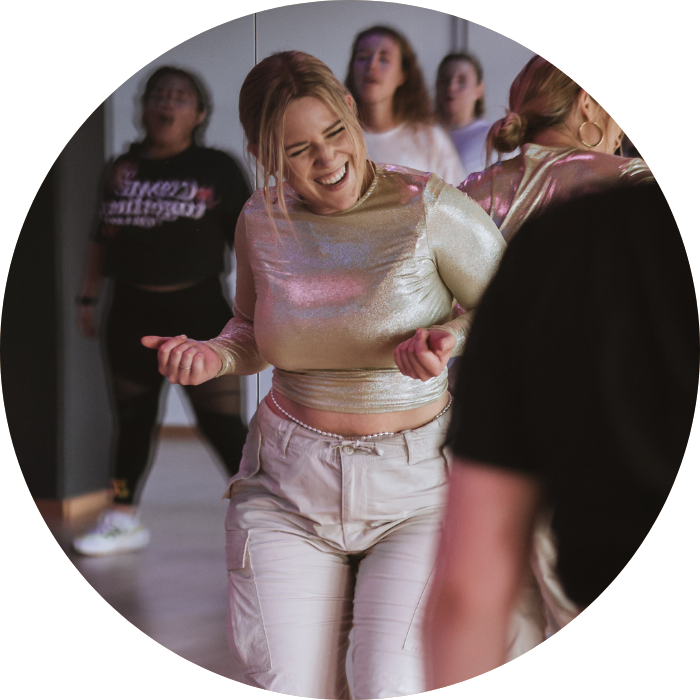 Tanzerfahrung in folgenden Tanzarten: Contemporary, Jazz, Gesellschaftstanz, Ballett, Hip Hop, orientalischer Tanz, Jazz-Funk.